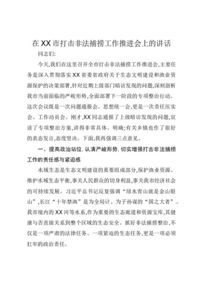 / 【七哥公文】2025年:在XX市打击非法捕捞工作推进会上的讲话+更多免费公文+VX:QiGeGongWen2024