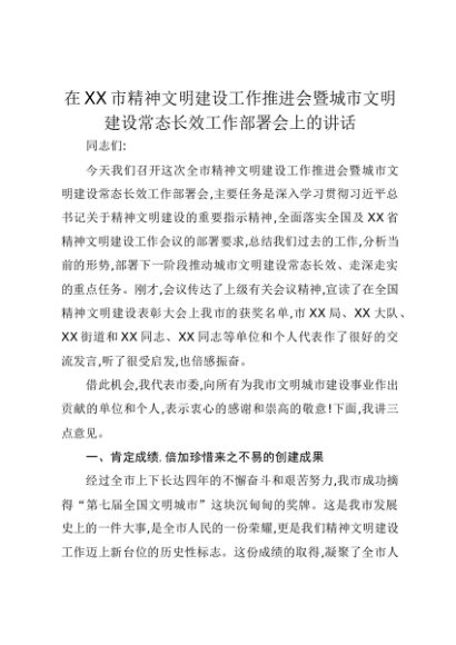 【七哥公文】2025年:在XX市精神文明建设工作推进会暨城市文明建设常态长效工作部署会上的讲话+更多免费公文+VX:QiGeGongWen2024