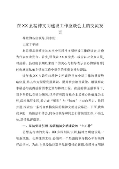/ 【七哥公文】2025年:在XX县精神文明建设工作座谈会上的交流发言+更多免费公文+VX:QiGeGongWen2024