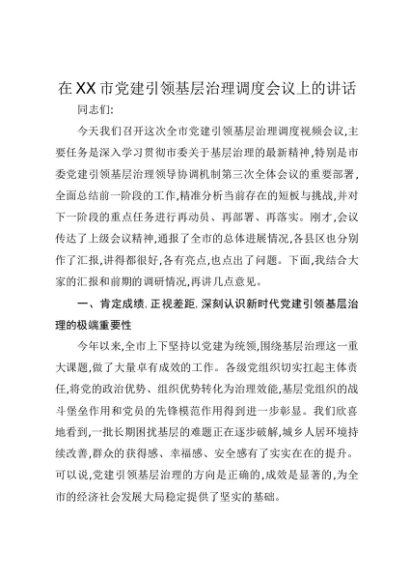 / 【七哥公文】2025年:在XX市党建引领基层治理调度会议上的讲话+更多免费公文+VX:QiGeGongWen2024