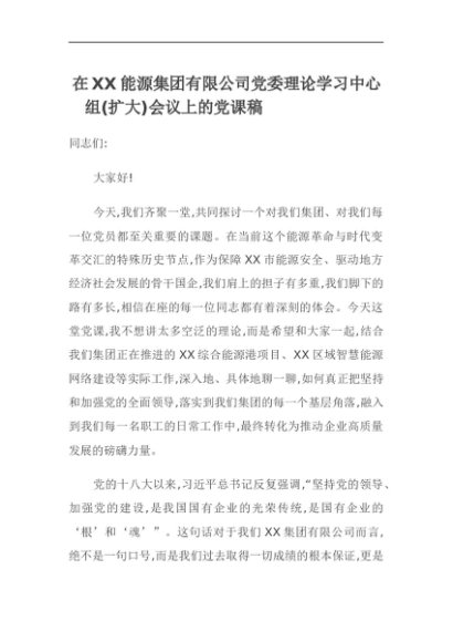 【七哥公文】2025年:在XX能源集团有限公司党委理论学习中心组(扩大)会议上的党课稿+更多免费公文+VX:QiGeGongWen2024