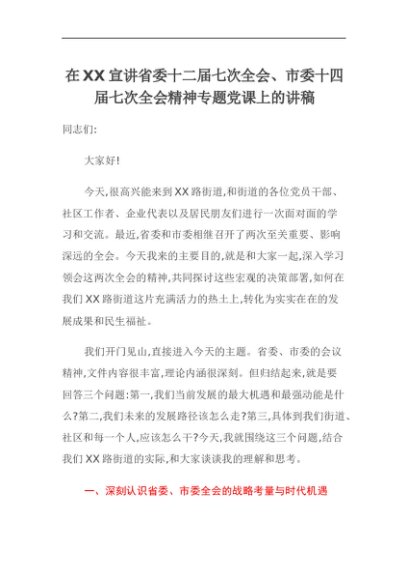 【七哥公文】2025年:在XX宣讲省委十二届七次全会、市委十四届七次全会精神专题党课上的讲稿+更多免费公文+VX:QiGeGongWen2024