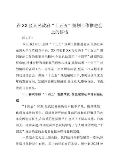 【七哥公文】2025年:在XX区人民政府“十五五”规划工作推进会上的讲话+更多免费公文+VX:QiGeGongWen2024