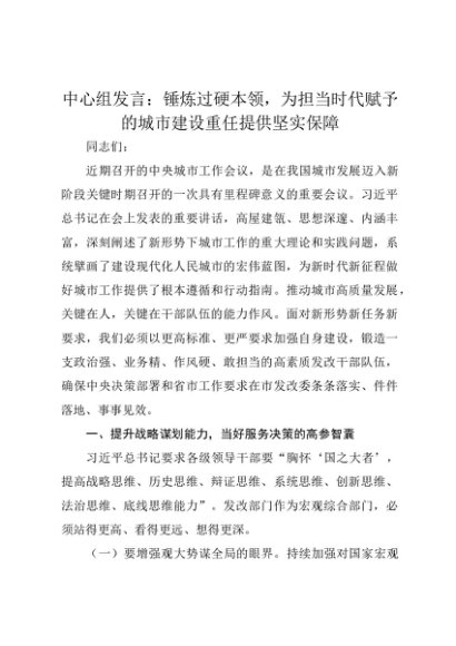 【七哥公文】2025年:中心组发言:锤炼过硬本领,为担当时代赋予的城市建设重任提供坚实保障+更多免费公文+VX:QiGeGongWen2024
