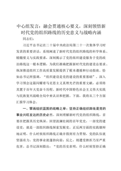 【七哥公文】2025年:中心组发言:融会贯通核心要义,深刻领悟新时代党的组织路线的历史意义与战略内涵+更多免费公文+VX:QiGeGongWen2024