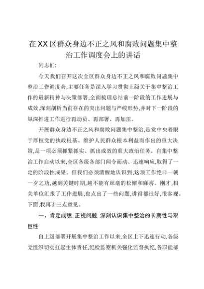 【七哥公文】2025年:在XX区群众身边不正之风和腐败问题集中整治工作调度会上的讲话+更多免费公文+VX:QiGeGongWen2024