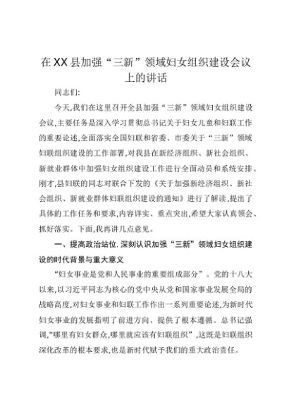【七哥公文】2025年:在XX县加强“三新”领域妇女组织建设会议上的讲话+更多免费公文+VX:QiGeGongWen2024