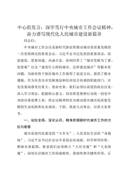 【七哥公文】2025年:中心组发言:深学笃行中央城市工作会议精神,奋力谱写现代化人民城市建设新篇章+更多免费公文+VX:QiGeGongWen2024