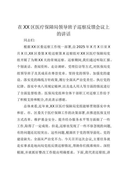 / 【七哥公文】2025年:在XX区医疗保障局领导班子巡察反馈会议上的讲话+更多免费公文+VX:QiGeGongWen2024