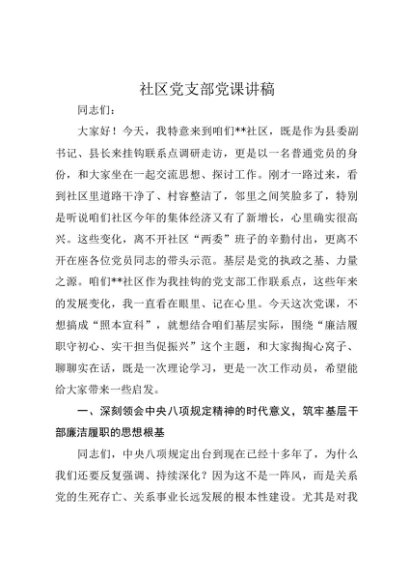 / 【七哥公文】2025年:社区党课讲稿:廉洁履职守初心、实干担当促振兴+更多免费公文+VX:QiGeGongWen2024