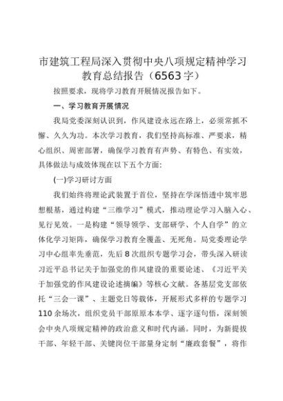 【七哥公文】2025年:市建筑工程局深入贯彻中央八项规定精神学习教育总结报告(6563字)+更多免费公文+VX:QiGeGongWen2024