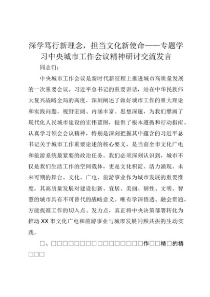 【七哥公文】2025年:深学笃行新理念,担当文化新使命——专题学习中央城市工作会议精神研讨交流发言+更多免费公文+VX:QiGeGongWen2024