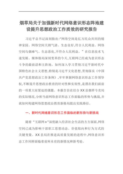 【七哥公文】2025年:烟草局关于加强新时代网络意识形态阵地建设提升思想政治工作质效的研究报告+更多免费公文+VX:QiGeGongWen2024