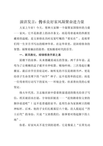 / 【七哥公文】2025年:演讲发言:传承良好家风 凝聚奋进力量+更多免费公文+VX:QiGeGongWen2024