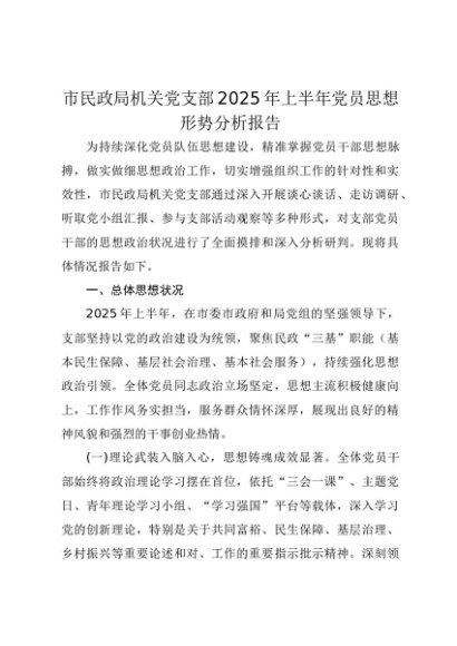 【七哥公文】2025年:市民政局机关党支部2025年上半年党员思想形势分析报告+更多免费公文+VX:QiGeGongWen2024
