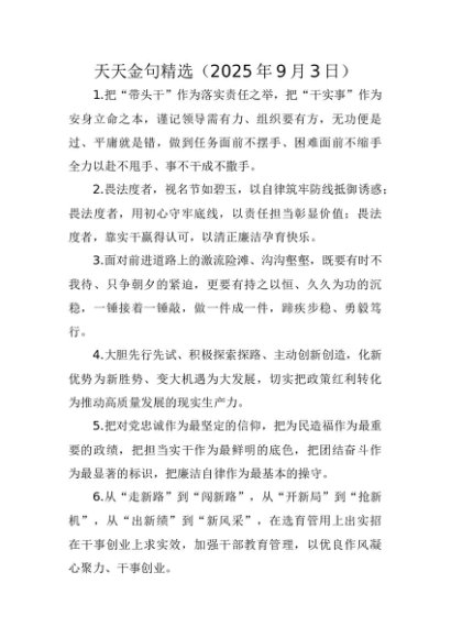 【七哥公文】2025年:天天金句精选(2025年9月3日)+更多免费公文+VX:QiGeGongWen2024