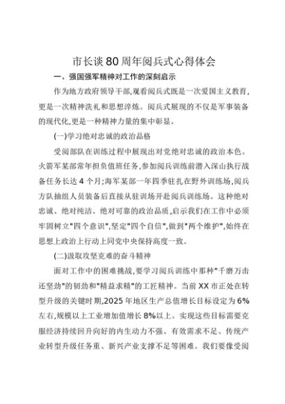 / 【七哥公文】2025年:市长谈80周年阅兵式心得体会+更多免费公文+VX:QiGeGongWen2024