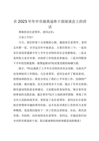 / 【七哥公文】2025年:在2025年年中市级离退休干部座谈会上的讲话+更多免费公文+VX:QiGeGongWen2024
