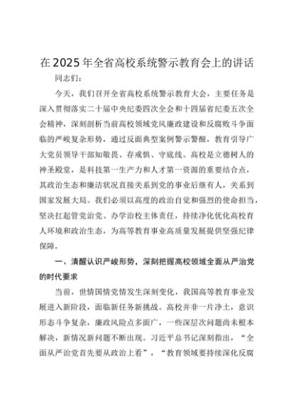 / 【七哥公文】2025年:在2025年全省高校系统警示教育会上的讲话+更多免费公文+VX:QiGeGongWen2024