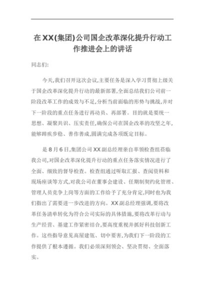【七哥公文】2025年:在XX(集团)公司国企改革深化提升行动工作推进会上的讲话+更多免费公文+VX:QiGeGongWen2024