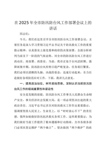 / 【七哥公文】2025年:在2025年全市防汛防台风工作部署会议上的讲话+更多免费公文+VX:QiGeGongWen2024