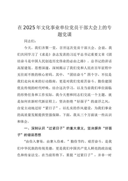 【七哥公文】2025年:在2025年文化事业单位党员干部大会上的专题党课讲稿+更多免费公文+VX:QiGeGongWen2024