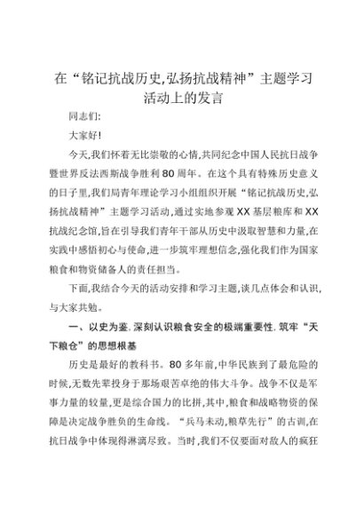 【七哥公文】2025年:在“铭记抗战历史,弘扬抗战精神”主题学习活动上的发言+更多免费公文+VX:QiGeGongWen2024