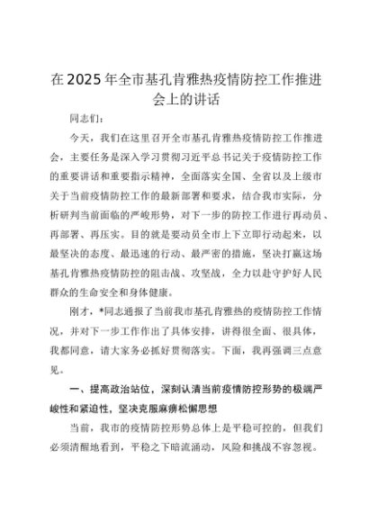 【七哥公文】2025年:在2025年全市基孔肯雅热疫情防控工作推进会上的讲话+更多免费公文+VX:QiGeGongWen2024