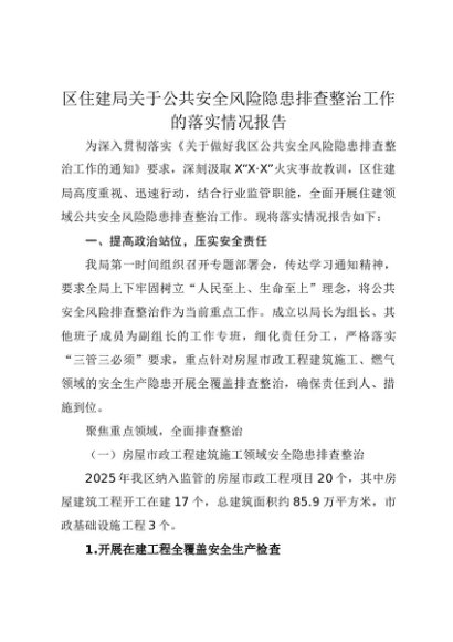 【七哥公文】2025年:区住建局关于公共安全风险隐患排查整治工作的落实情况报告+更多免费公文+VX:QiGeGongWen2024