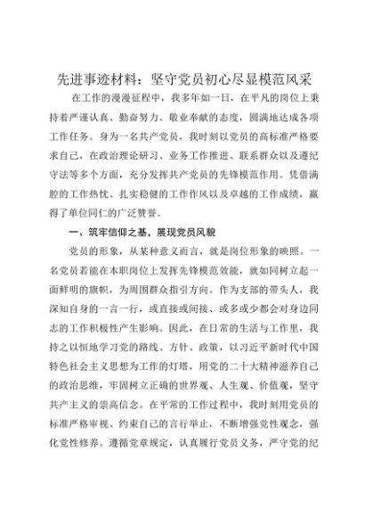 / 【七哥公文】2025年:先进事迹材料:坚守党员初心 尽显模范风采+更多免费公文+VX:QiGeGongWen2024