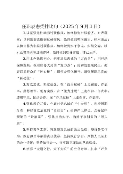 【七哥公文】2025年:任职表态类排比句(2025年9月1日)+更多免费公文+VX:QiGeGongWen2024