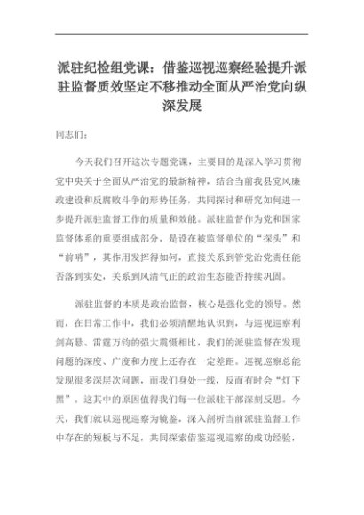【七哥公文】2025年:派驻纪检组党课讲稿:借鉴巡视巡察经验提升派驻监督质效坚定不移推动全面从严治党向纵深发展+更多免费公文+VX:QiGeGongWen2024