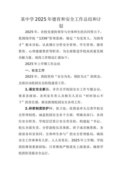 / 【七哥公文】2025年:某中学2025年德育和安全工作总结和计划+更多免费公文+VX:QiGeGongWen2024