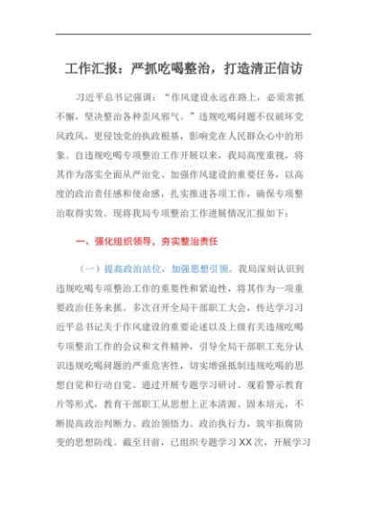 / 【七哥公文】2025年:工作汇报:严抓吃喝整治,打造清正信访+更多免费公文+VX:QiGeGongWen2024