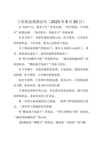 / 【七哥公文】2025年:工作状态类排比句(2025年8月30日)+更多免费公文+VX:QiGeGongWen2024