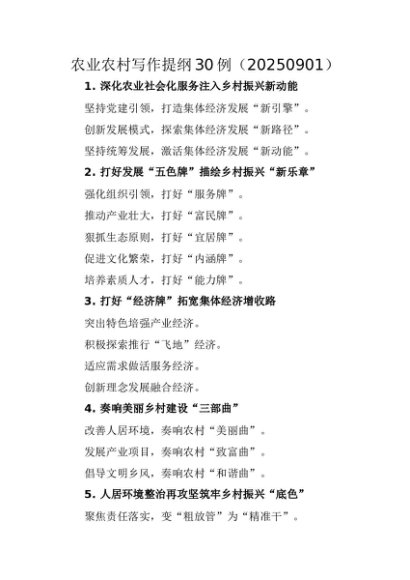 / 【七哥公文】2025年:农业农村写作提纲30例(20250901)+更多免费公文+VX:QiGeGongWen2024