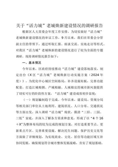 / 【七哥公文】2025年:关于“活力城”老城焕新建设情况的调研报告+更多免费公文+VX:QiGeGongWen2024