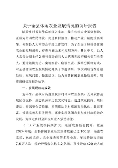 / 【七哥公文】2025年:关于全县休闲农业发展情况的调研报告+更多免费公文+VX:QiGeGongWen2024