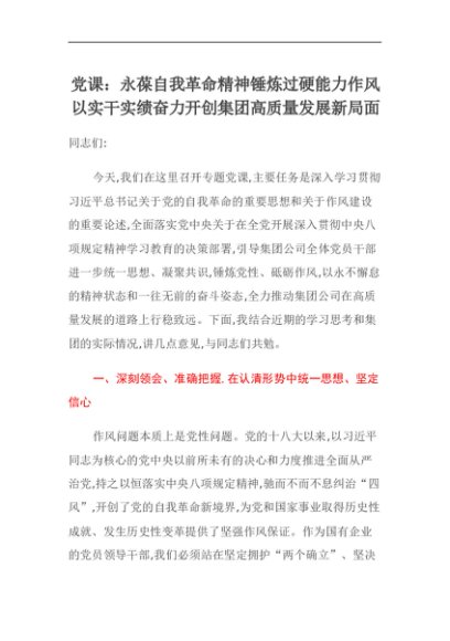 【七哥公文】2025年:党课讲稿:永葆自我革命精神锤炼过硬能力作风以实干实绩奋力开创集团高质量发展新局面+更多免费公文+VX:QiGeGongWen2024