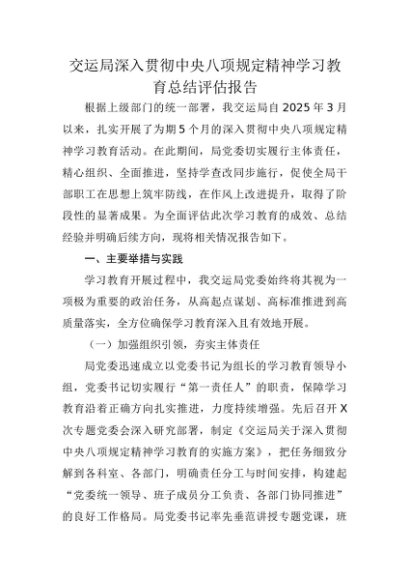 【七哥公文】2025年:交运局深入贯彻中央八项规定精神学习教育总结评估报告+更多免费公文+VX:QiGeGongWen2024