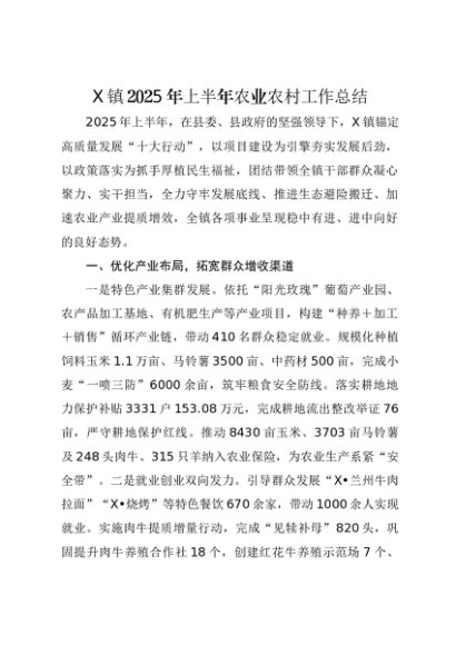 / 【七哥公文】2025年:X镇2025年上半年农业农村工作总结+更多免费公文+VX:QiGeGongWen2024
