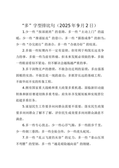 / 【七哥公文】2025年:“多”字型排比句(2025年9月2日)+更多免费公文+VX:QiGeGongWen2024
