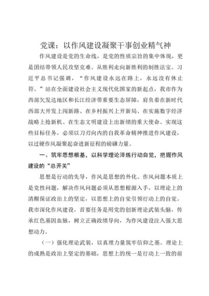 / 【七哥公文】2025年:党课讲稿:以作风建设凝聚干事创业精气神+更多免费公文+VX:QiGeGongWen2024