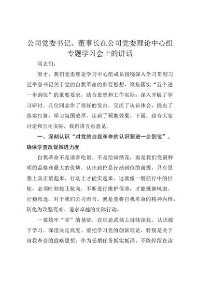 【七哥公文】2025年:公司党委书记、董事长在公司党委理论中心组专题学习会上的讲话+更多免费公文+VX:QiGeGongWen2024