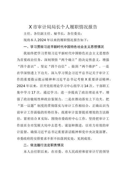 / 【七哥公文】2025年:X市审计局局长个人履职情况报告+更多免费公文+VX:QiGeGongWen2024