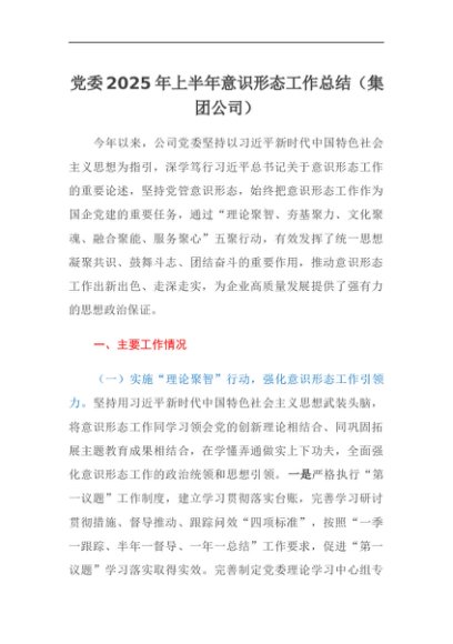 / 【七哥公文】2025年:党委2025年上半年意识形态工作总结(集团公司)+更多免费公文+VX:QiGeGongWen2024