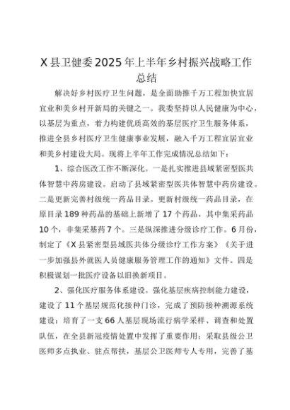 / 【七哥公文】2025年:X县卫健委2025年上半年乡村振兴战略工作总结+更多免费公文+VX:QiGeGongWen2024