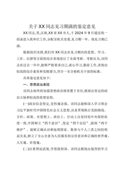 【七哥公文】2025年:关于XX同志见习期满的鉴定意见+更多免费公文+VX:QiGeGongWen2024