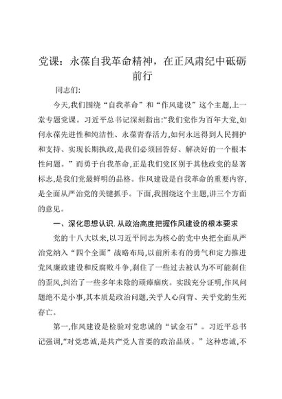 【七哥公文】2025年:党课讲稿:永葆自我革命精神,在正风肃纪中砥砺前行+更多免费公文+VX:QiGeGongWen2024