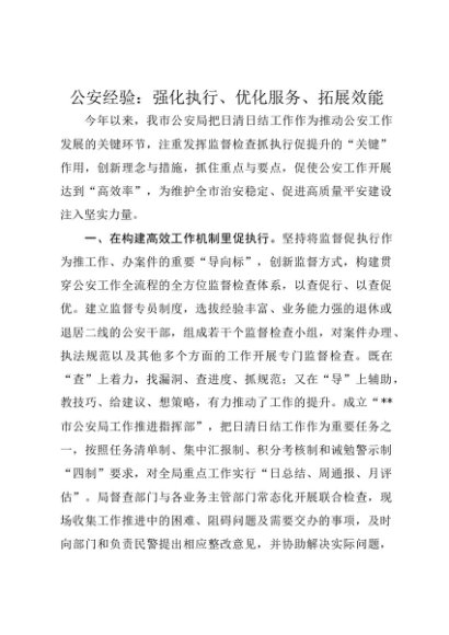 / 【七哥公文】2025年:公安经验:强化执行、优化服务、拓展效能+更多免费公文+VX:QiGeGongWen2024